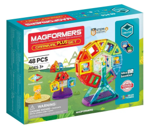 Magformers Carnival PLUS je tematická stavebnice, ze které lze sestrojit mnoho variací točících se pouťových atrakcí (houpačka, ruské kolo, kolotoč).