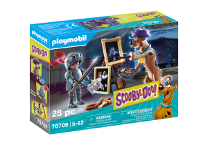 Scooby Doo hledá stopy v obrazech, aby zjistil, zda neobsahují nějaké záhadné stopy, které by pomohly zachytit ducha. Černý rytíř prý ožívá a chodí ve strašidelném brnění.