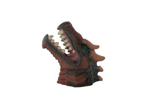 Gumové návleky na ruku ve tvaru dinosauří hlavy.