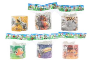 Plastová pružina o rozměru cca 6,5 x 7,5 s 7,5 cm s obrázky zvířátek ze safari.
