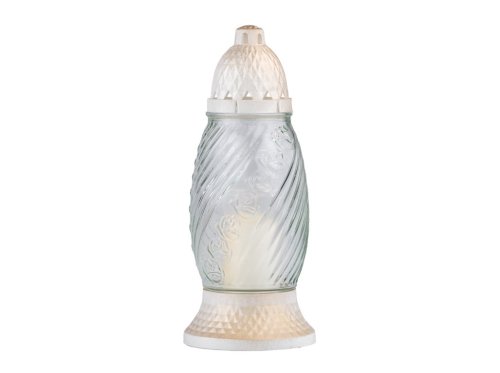 Tento produkt poskytuje až 24 hodin hoření. Vhodné ke zkrášlení hřbitovů, pomníků a ostatních míst posledního odpočinku. Jeho rozměry jsou 27 cm.