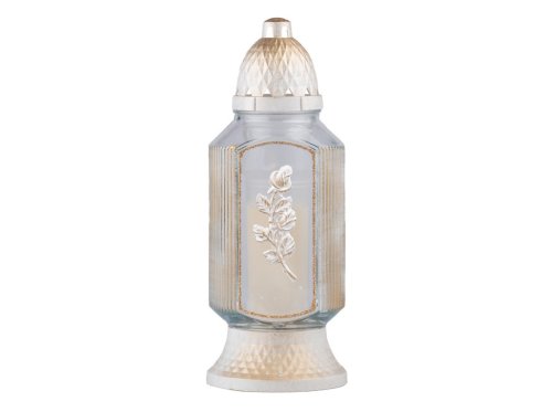 Vhodné pro umístění na hroby. Tento produkt hoří až 32 hodin. Jeho rozměry jsou 29 cm.