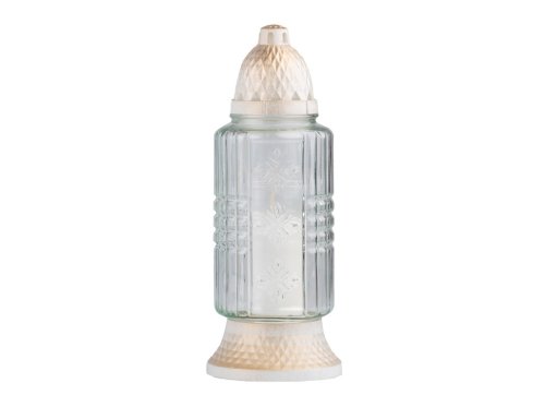 Vhodné pro výzdobu míst posledního odpočinku. Tento produkt zajišťuje až 32 hodin hoření. Jeho rozměry jsou 29 cm.