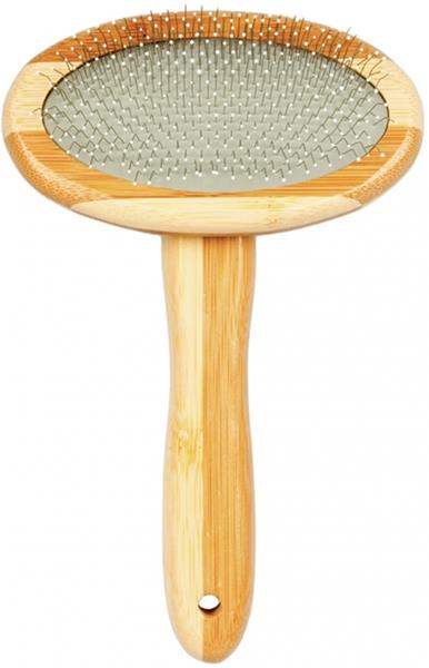 Hřeben k odstraňování odumřelé srsti bez podráždění pokožky. Vhodný pro hustou, dlouhou i kudrnatou srst větších plemen. Ergonomická rukojeť z ekologického bambusu. Vhodný pro psy i kočky. Ve třech velikostech. Rozměry: 19,5 x 12 cm (délka x šířka).