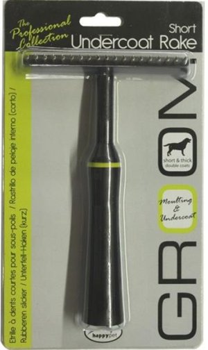 Hrablo Groom Undercoat Rake je vhodné k rozčesávání zacuchané a zaplstěné srsti a ideální k vyčesávání línající srsti a husté podsady plemen s krátkou až středně dlouhou srstí. Kulaté kovové zuby (14 mm) s tupými konci chrání a masírují pokožku. Válcovitá hlava potažená plastem brání hromadění statického náboje. Rukojeť je ergonomická (tvarovaná pro pohodlný úchop). Česání usnadňuje i mírně nakloněná hlava hrabla.
