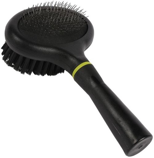 Kartáč Groom Dual Slicker Brush je vhodný k vyčesávání línající srsti a podsady psů a koček se středně hustou až hustou nebo dvojitou (patrovou) srstí. Není vhodný na provázkovitou srst. Kombinovaný kartáč v sobě spojuje dvě základní vyčesávací pomůcky: