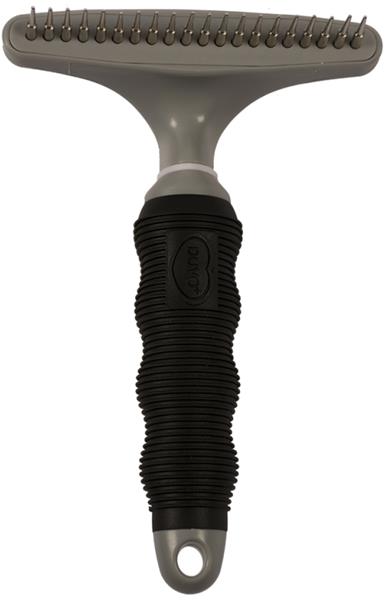 Hřeben s rotačními zuby pro odstranění odumřelé srsti. Tento hřeben má 20 zubů a je vhodný pro vyčesání srsti psů a koček s krátkou, středně dlouhou, dlouhou nebo hustou srstí. Rukojeť je tvarovaná pro pohodlné držení v ruce. Velikost: 11 x 16 cm, délka zubů 2 cm 20 zubů