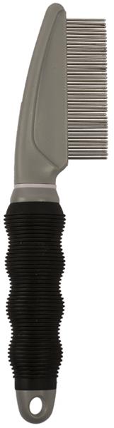 Hřeben jemný střední velikosti se zaoblenými zuby, aby chránil při česání pokožku Vašeho zvířecího mazlíčka. Hřeben je vhodný pro všechny typy srsti. Tento hřeben je vhodný na srst pejsků i kočiček. Rukojeť je pogumovaná a tvarovaná pro pohodlné držení v ruce. Velikost: 21 x 4,5 cm, délka zubů 2 cm 42 zubů