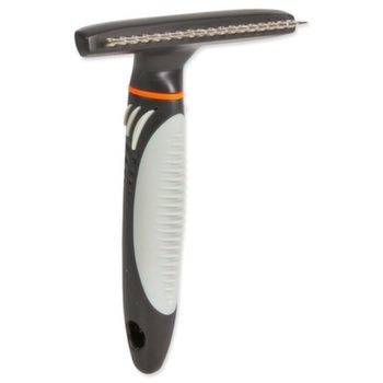 Hřeben pro psy s plastovou rukojetí s protiskluzovou gumou. Je vhodný pro krátkosrsté a drsnosrsté psy.