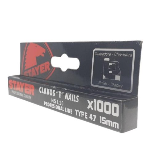 hřebíky do sponkovačky / hřebíkovačky NS L20, STAYER hřebíky typu „T“ délka: 15 mm vhodné pro čalounické a tesařské práce balení: 1000 ks