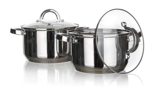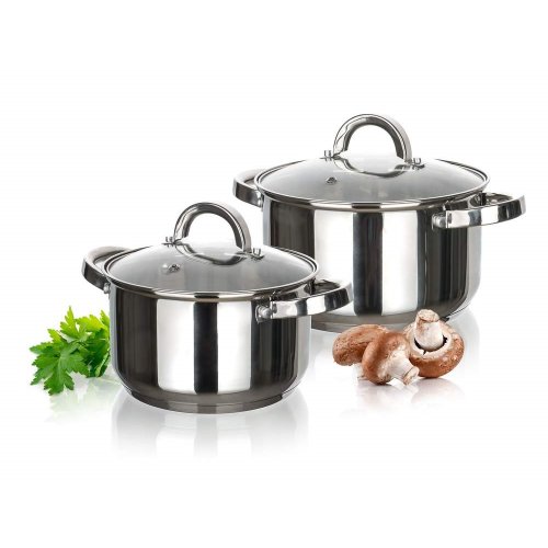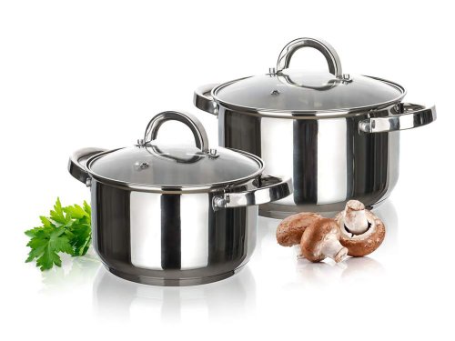 Hrnec 16 cm, 20 cm, nerez, se skleněnou poklicí, sada 2díl.