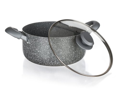 Hrnec 18 x 8,5 cm, nepřilnavý povrch, GRANITE, se skl. poklicí.