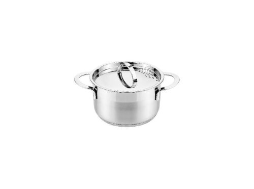 Hrnec s poklicí. Tento moderní, nerezový hrnec je prfektní pro každodenní vaření. Na bocích má dvě nerezová ucha, stejně jako jedno na pokličce. Poklička má také dírky pro případné slévání tekutin po uvaření brambor, těstovin apod. Na vnitřní straně hrnce je měrka. Povrchová úprava je kombinací matnosti a lesku. Je ideální na indukční, keramické, sklokeramicé, elektrické i plynové sporáky.