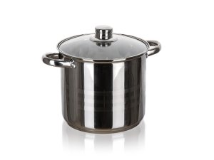 Nerezový hrnec LIVING se skleněnou poklicí, nerezovým knobem a držadly.