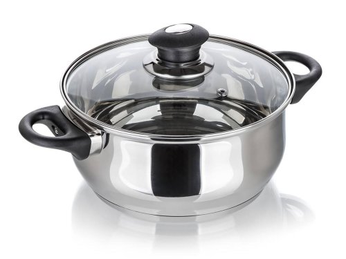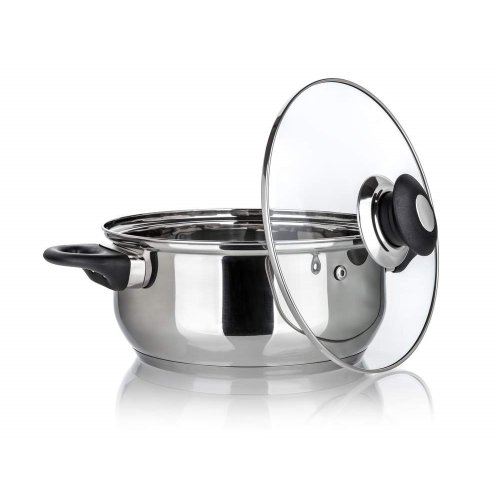 Nerezový hrnec se skleněnou poklicí SUPER VALUE pro přípravu různých pokrmů. Vnější i vnitřní povrchová úprava v lesku. Bakelitový knob i držadla. Hrnec lze používat na všechny typy varných desek.