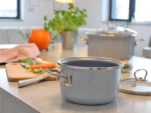 Hrnec BELIS PREMIUM šedý - řada, v které jsme spojili kvalitu a eleganci. Nádobí o síle 2 mm jsme polili naším, po dlouhá léta ověřeným, kvalitním smaltem. Tato prémiová řadu skvěle doplňuje nerezové kování a skleněnou poklici s novým a vylepšeným otvorem pro únik přebytečné páry. Nádobí PREMIUM je určené pro ty, kteří upřednostňují jednoduchost, eleganci a dlouholetou životnost nádobí.