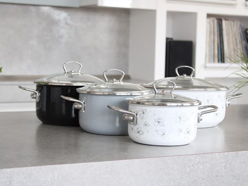 Hrnec BELIS PREMIUM šedý - řada, v které jsme spojili kvalitu a eleganci. Nádobí o síle 2 mm jsme polili naším, po dlouhá léta ověřeným, kvalitním smaltem. Tato prémiová řadu skvěle doplňuje nerezové kování a skleněnou poklici s novým a vylepšeným otvorem pro únik přebytečné páry. Nádobí PREMIUM je určené pro ty, kteří upřednostňují jednoduchost, eleganci a dlouholetou životnost nádobí.