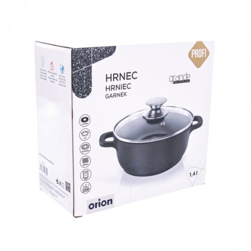 Masivní hrnec s poklicí s velmi kvalitním nepřilnavým povrchem PFLUON GRANIT. Můžete v něm vařit, smažit, dusit, opékat a zapékat s minimální potřebou tuku. Připravovaný pokrm se nepřipéká. Poklice s otvorem pro únik přebytečné páry. Vhodný na všechny typy spotřebičů včetně indukce a trouby. Materiál hliník s vynikajícím nepřilnavým povrchem PFLUON GRANIT a s profilovaným dnem, sklo, nerez. Objem 1.4 litru, průměr 16 cm, výška 8/12 cm. Doporučujeme použití kuchyňské chňapky. U plynových sporáků volte správnou velikost plamene, u elektrických, sklokeramických a indukčních vařičů je nutné zvolit odpovídající velikost ploténky. Připravovaný pokrm lze na sporáku připravit a pak jej vložit do trouby. Připravené jídlo můžete pohodlně skladovat v hrncích také v chladničce. Při použití v troubě poklice max. do 200 °C. Lze mýt v myčce na nádobí. EAN 8592381156725