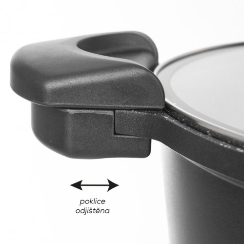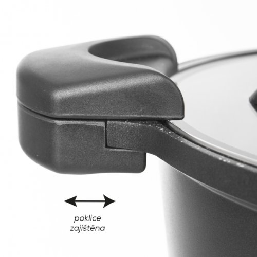 Nízkotlaký hrnec s poklicí šetří energii a zkracuje dobu přípravy potravin. Při vaření s nasazenou a zajištěnou poklicí se snižuje ztráta páry na minimum. Část páry vznikající v hrnci kondenzuje na potravinách a svou energii tak předává připravovaným potravinám, další část páry kondenzuje na samotném hrnci a ve formě horké vody padá zpět do hrnce. Díky tomuto procesu lze v hrnci vařit s podstatně menším množstvím vody a tím se spotřebuje až o 50 % méně energie než při běžném vaření. Dochází k zachování cenných látek v potravinách a stejně tak je zachována vlastní chuť potravin. V pokličce hrnce je umístěn parní ventil, který zajišťuje neustálé vyrovnávání tlaku mezi vnitřkem hrnce a okolím. Díky ventilu je již od začátku vaření zabráněno případnému nebezpečí z důvodu přetlaku, které může vzniknout u tlakových hrnců. Poklice se uzavře posunutím horní části uší směrem ke středu. Pokličku hrnce lze díky neustálému vyrovnání tlaku kdykoliv sejmout a hrnec používat ke klasickému vaření. Energeticky úsporný hrnec je vhodný pro všechny druhy sporáků, tedy plynové, elektrické, se sklokeramickou deskou a indukční. Není určeno pro použití v troubě. Hliník s povrchovou úpravou, uvnitř hrnce je 2vrstvý nepřilnavý povrch, vně vrstva PTFE, sklo, plast, nerez, bakelit. Hrnec lze mýt v myčce na nádobí, poklice ne. Objem 5.5 litru, průměr 26 cm, šířka s uchy 37 cm, výška 14/23 cm. EAN 8592381164355
