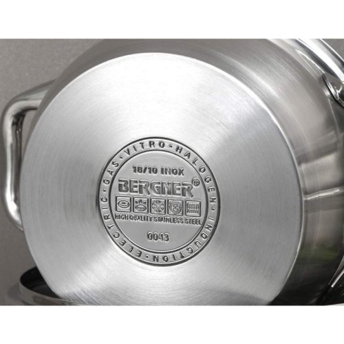 Hrnce jsou nezbytnou součástí domácnosti. Vybavte si i tu vaši krásným a praktickým hrncem od ověřeného výrobce BERGNER. Jeho nerezová barva je univerzální a bude se hodit do každé kuchyně. Hrnec má oproti kastrolu širší dno a kratší stěny, což vám umožní rychlejší vaření a lepší distribuci tepla. Hrnec je vyroben z prvotřídních materiálů, které zaručí, že jídlo bude vždy dokonale uvařené a bude vynikat svou chutí.