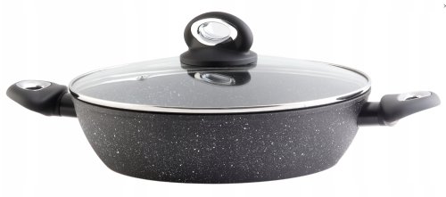 Vysoce kvalitní nízký hliníkový hrnec potažený dvěma odolnými nepřilnavými vrstvami PFLUON s černým mramorovým vzhledem. Hrnec je vhodný pro všechny typy sporáků, od plynových přes elektrické, od sklokeramických až po indukci. Rovnoměrně a rychle se zahřívá. Povrch PFLUON má vysoké nepřilnavé vlastnosti a je také odolný proti oděru. Snadno se udržuje v čistotě. Vhodné do myčky nádobí, ale nedoporučuje se, protože by to mohlo zkrátit trvanlivost povlaku. Má skvělé, na dotek příjemné rukojeti Soft Touch, které zajišťují bezpečný úchop pánve. Průměr 28 cm a výška 7 cm (výška bez poklice). Součástí hnce je poklice. EAN 5902041306675
