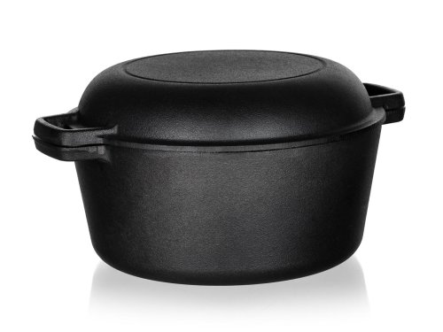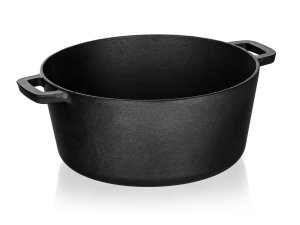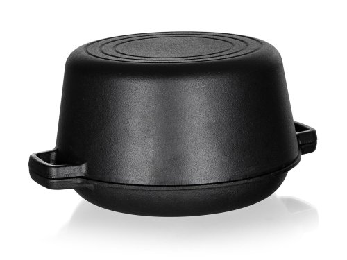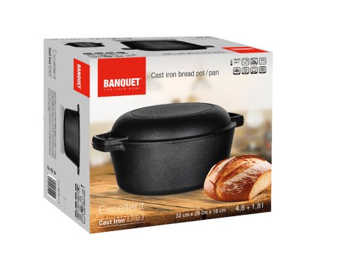Litinový kulatý hrnec EXCELLENT na chleba. Litinový hrnec je ideální nejen pro pečení chleba. Litina zajistí rovnoměrné propečení čímž dodá chlebu nezaměnitelnou zlatou křupavou kůrku. Masivní materiál, který jakmile se nahřeje, vydrží dlouho a rovnoměrně rozvádí teplo, díky němuž se pokrm v litinovém pekáči upeče rovnoměrně, za kratší dobu a úsporněji. Před prvním použitím naneste na povrch pekáče rostlinný olej a postupně jej začněte ohřívat v troubě (začněte na mírném ohni a pomalu zvyšujte teplotu). Zapečením oleje získá výrobek svoji nepřilnavost. Litinový hrnec je ideálním pomocníkem ve vaší kuchyni. Můžete v něm péct jakékoliv pečivo, buchty, pizzu, ale i zapékat brambory, zeleninu apod. Nebo můžete víko použít samostatně jako pánev ke smažení, nebo jako pekáček pro zapékání vašich oblíbených pokrmů.