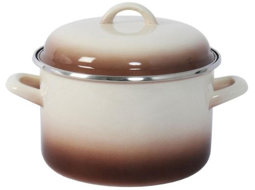 Nádobí v designu Capuccino je stálicí na českém trhu a jistě potěší milovníky klasiky, kteří upřednostňují decentní vzhled nádobí před nádobí s výrazným dekorováním. Na venkovní straně nádobí Capuccino je použita líbivá kombinace béžového a hnědého smaltu s postupným přechodem mezi oběma zmíněnými barvami. Uvnitř tohoto nádobí je nanesen vysoce odolný hnědý smalt, jež je mnohem odolnější proti zašpinění, než povrchy světlejších barev.