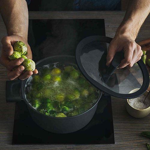 Skleněná poklice se silikonovým lemem má zabudovanou funkci slévání