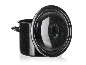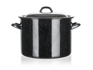 Hrnec + skleněná poklice, pr .22 cm, 5,5 l. objem: 5,5 l průměr: 22 cm výška: 16,5 cm Smaltovaný hrnec se skleněnou poklicí.