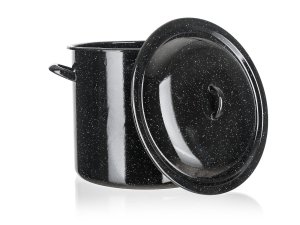 Hrnec + skleněná poklice, pr .24 cm, 7,5 l. objem: 7,5 l průměr: 24 cm výška: 16,5 cm Smaltovaný hrnec se skleněnou poklicí.