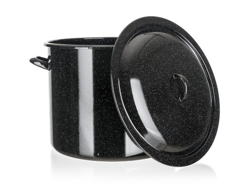 Smaltovaný hrnec se skleněnou poklicí. Hrnec lze používat na všechny typy varných desek mimo indukce.