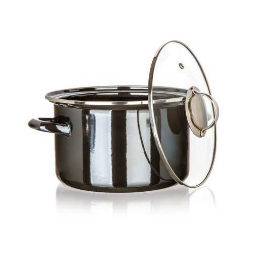 Smaltovaný hrnec se skleněnou poklicí. Průměr 24 cm, výška (bez poklice) 11 cm, síla stěny 0.8 mm. Hrnec lze používat na všechny typy varných desek včetně indukce. Hrnec není vhodný do myčky nádobí, trouby a mikrovlnky. EAN 8591022609910