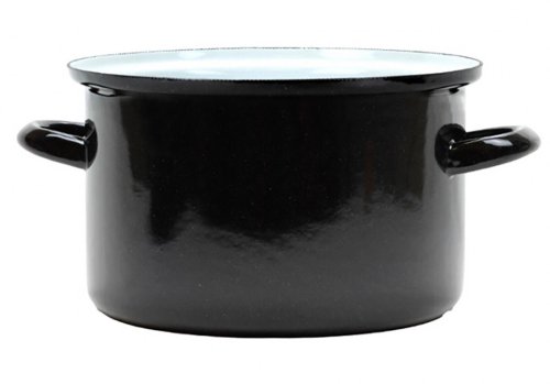 objem: 8 l průměr: 26 cm výška: 17,5 cm síla plechu: 1-1,2 mm vnitřní barva: bílý granit vnější barva: černá s bílou pihou
