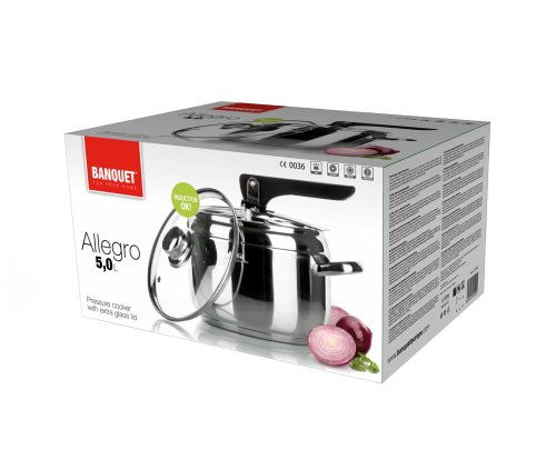 Nerezový tlakový hrnec ALLEGRO s pákovým uzávěrem. Víko obsahuje dva ventily, hlavní pracovní ventil a pomocný / bezpečnostní ventil. Tlakový hrnec je určen pro rychlou přípravu pokrmů a lze jej používat na všechny typy varných desek vč.indukce. Víko tlakového hrnce obsahuje hlavní pracovní ventil a pomocný ventil pro případ zanešení pracovního ventilu, což činí hrnec maximálně bezpečný ! Hrnec je vyroben z pevného materiálu, má silné dno a lze ho používat na všechny typy varných desek.