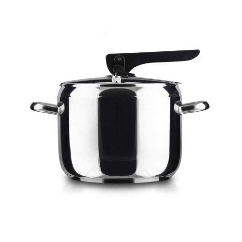 Nerezový tlakový hrnec s pákovým uzávěrem, 2 ventily, silné sendvičové dno. Víko obsahuje dva ventily, hlavní pracovní ventil a pomocný / bezpečnostní ventil. Tlakový hrnec je určen pro rychlou přípravu pokrmů a lze jej používat na všechny typy varných desek vč.indukce. Víko tlakového hrnce obsahuje hlavní pracovní ventil a pomocný ventil pro případ zanešení pracovního ventilu, což činí hrnec max.bezpečný ! Hrnec je vyroben z pevného materiálu, má silné dno a lze ho používat na všechny typy varných desek.