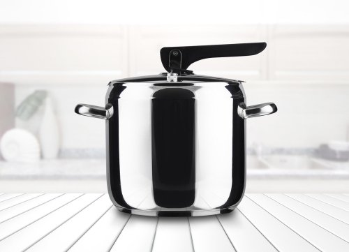 Nerezový tlakový hrnec s pákovým uzávěrem. Víko obsahuje dva ventily, hlavní pracovní ventil a pomocný bezpečnostní ventil. Tlakový hrnec je určen pro rychlou přípravu pokrmů a lze jej používat na všechny typy várných desek včetně indukce.