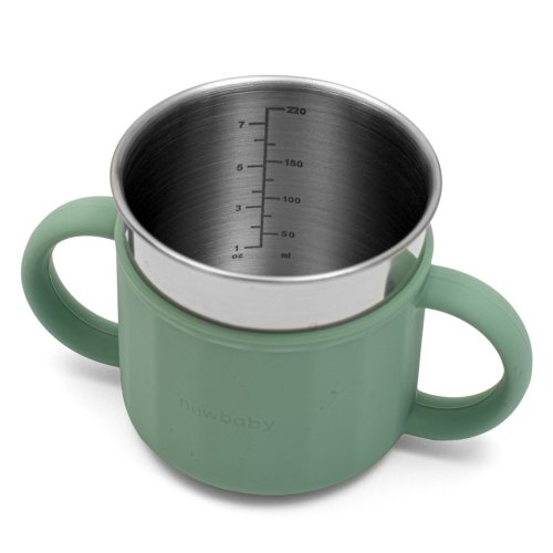"Silikonový hrneček 2 v 1 značky New Baby, který spojuje moderní design s funkčností, ideální pro děti již od prvních dnů života (0+). Vlastnosti produktu: Prémiový materiál: Hrneček je vyroben z 50 % z měkkého silikonu a z 50 % z nerezové oceli, což zajišťuje trvanlivost a bezpečné používání. Multifunkčnost: Vyměnitelný náustek – možnost použití se slámkou nebo s pítkem podle potřeb dítěte. Objem 220 ml: Perfektní na první nápoje vašeho miminka. Ergonomická držadla: Speciálně navržená držadla u
