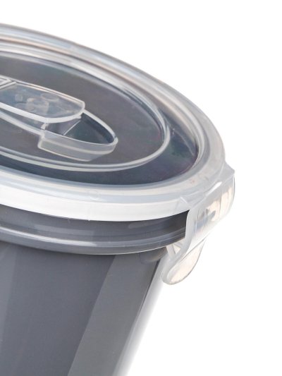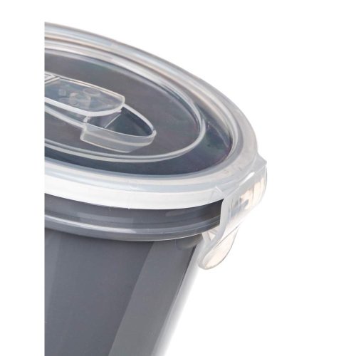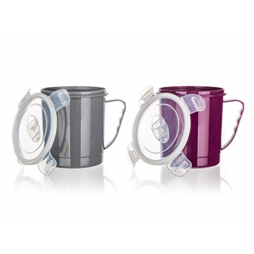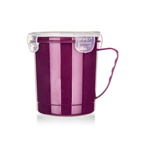 Plastový hermetický hrnek s uchem FAST CLICK. Silikonové těsnění zajišťuje vzduchotěsnost dózy. Díky tomu zůstávají potraviny dlouho čerstvé. Použití v mrazničce do -18 st.C a v mikrovlnné troubě do + 120 st.C.