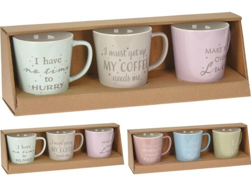 objem: 330 ml materiál: porcelán mix barev: pastelové barvy s potiskem balení: 3 ks - polootevřený box