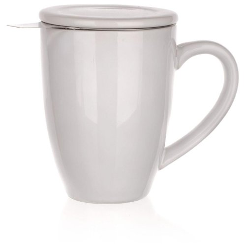 Hrnek 350 ml bílý keramický, víčko + nerez sítko.