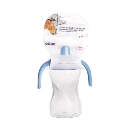 Dětský hrneček s pítkem zabraňuje rozlití nápoje při převrhnutí, dvě praktická ucha pro snadné držení.