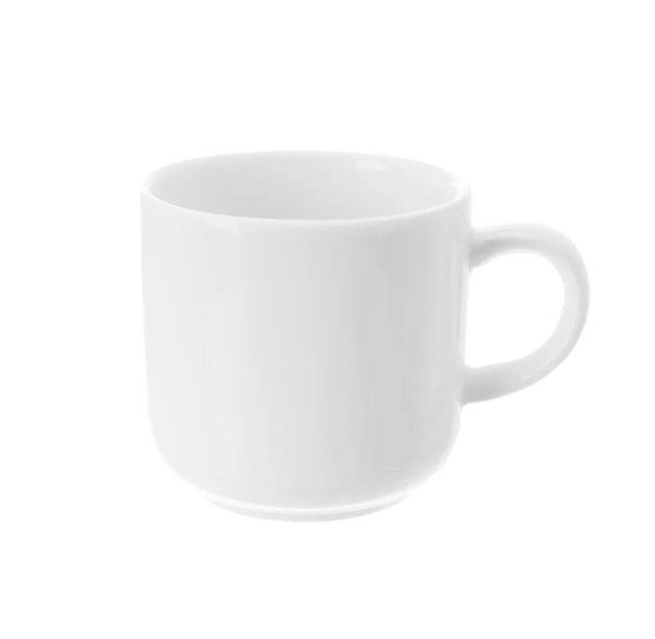 Porcelánový hrnek s uchem vhodný k podšálku VADA. Objem 100 ml, průměr 6 cm, výška 5.5 cm. Vhodný do myčky i MVT. EAN 9001794778022