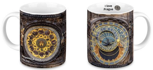 Pražský Orloj - jedná se o středověké astronomické hodiny, které již od roku 1402 byli zmiňovány jako součást věže na Staroměstské radnici a od roku 1410 se již jedná o současnou podobu Pražského Orloje. Veškeré naše hrnky, šálky, talířky, tácky a jiné zboží, prošlo atestem zdravotní nezávadnosti (platným pro EU) a je vhodné do všech standartních typů myček. Tento hrnek je skvělým dárkem pro všechny cestovatele a milovníky naší krásné matičky Prahy, stejně jako pro všechny, kteří si rádi dají kvalitní čaj, kávu či jiný nápoj, z kvalitního porcelánu. Materiál: Porcelán Motiv: Pražský Orloj Výška: 105 mm Objem: 460 ml