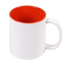 Bílý lesklý keramický hrnek Vnitřek oranžový Vnější strana je opatřena polyesterovou vrstvou Vhodný pro sublimační potisk Výška 95 mm, průměr 80 mm Objem 330 ml Ideální dárek pro nejrůznější příležitosti …