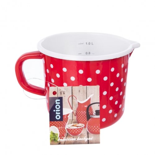 Hrnek smalt 1200ml ¤12cm s výlevkou, odměrka TEČKA