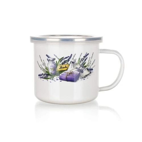 Smaltovaný hrnek LAVENDER 0,5 l s plastovým víčkem.