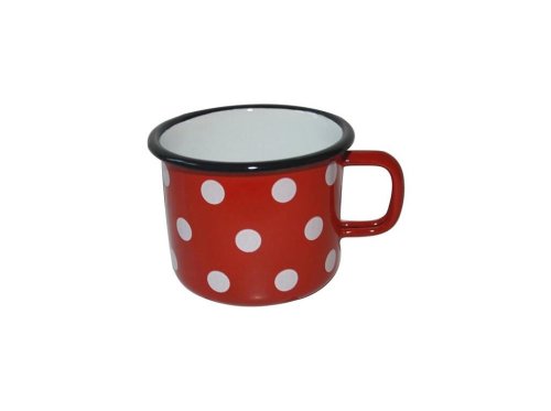 Materiál: kov, smalt Barva: červená, bílé tečky Výška: 8 cm Průměr: 9 cm Objem: 0,5 l