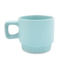 Matný keramický hrnek s vroubkovaným dnem a hranatým ouškem Vnější strana je opatřena polyesterovou vrstvou Vhodný pro sublimační potisk Výška 82 mm, průměr 91 mm Objem 300 ml Barva světle modrá