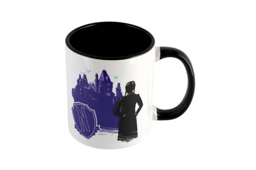 Keramický hrnek v objemu 315 ml, baleno v dárkovém boxu. Hrnek je možné použít do myčky nádobí a mikrovlnné trouby. Stylový design v bílo-černém provedení s fialovými prvky potěší každého fanouška temného humoru a atmosféry Nevermore Academy.
