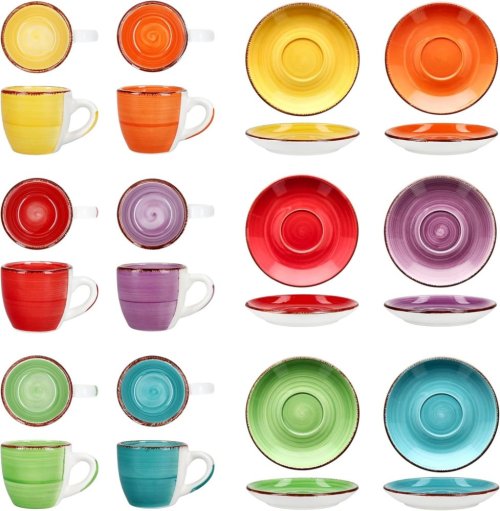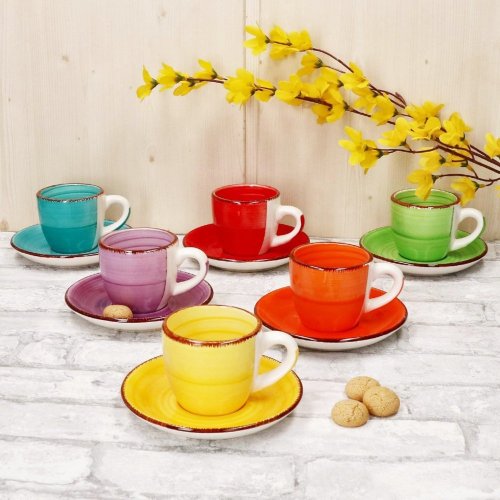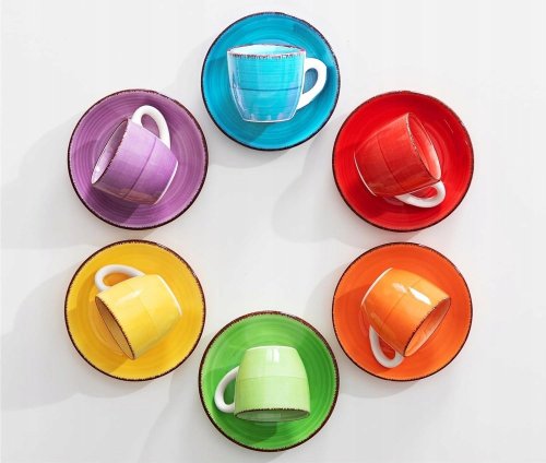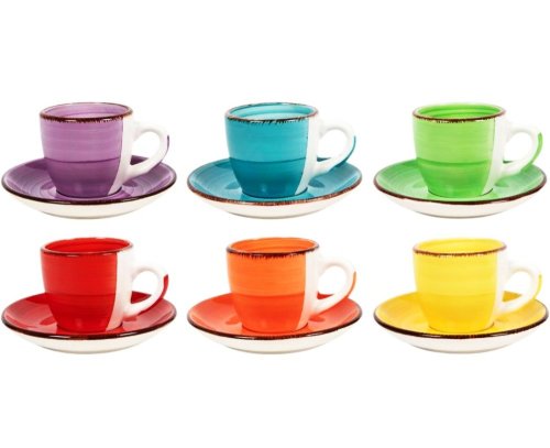 12 ks Keramická kávová souprava COLOURS - 6 x šálek na kávu + 6 x podšálek
